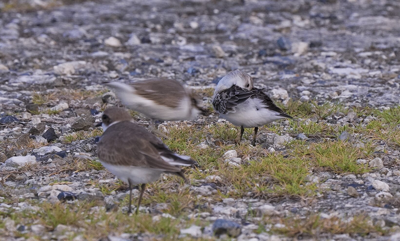 シロチドリの頭突きをくらってもトウネンは効いてないみたいね