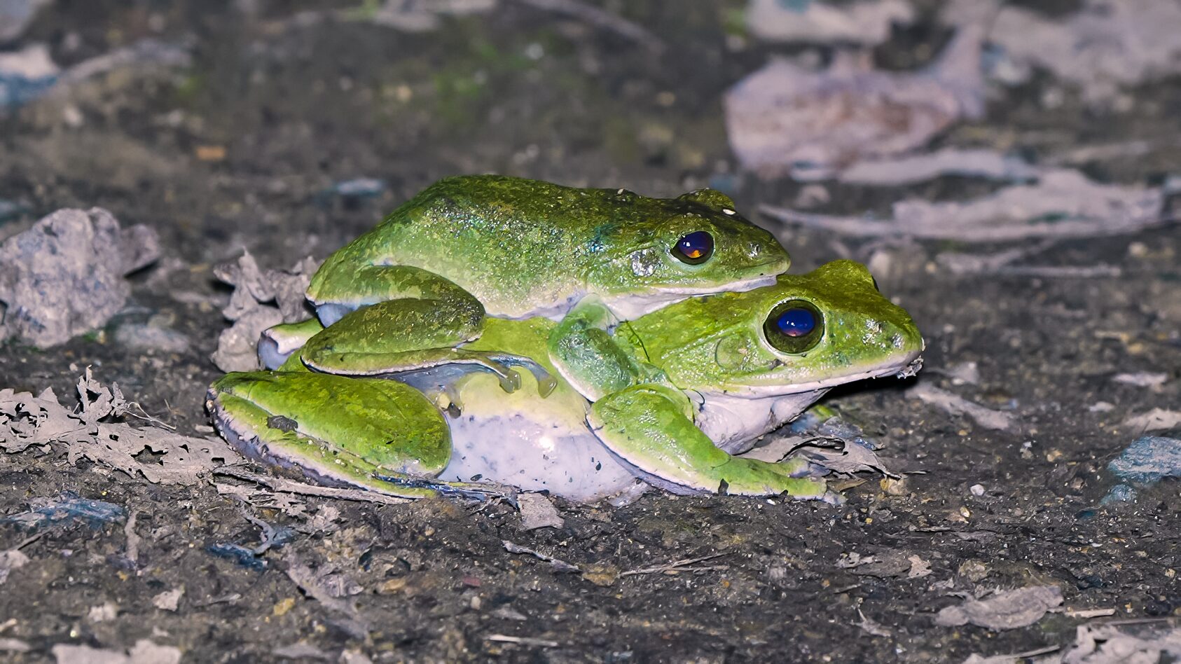 アマミアオガエルの波状攻撃だね